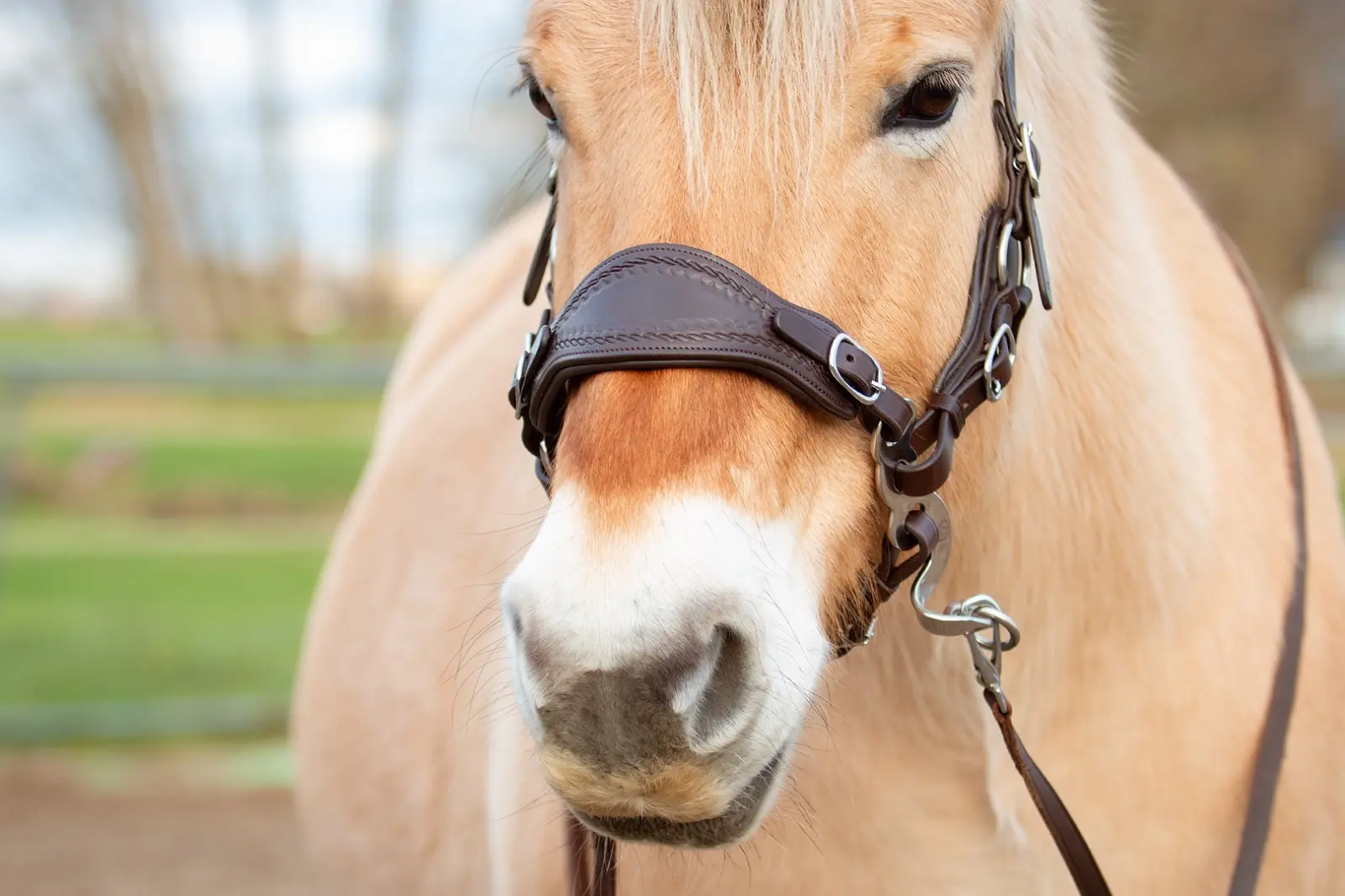 - Miękkie Podszycie: Gruba, komfortowa wyściółka chroni delikatną skórę nosa przed otarciami i sprawia, że sygnały płynące z wodzy są odbierane przez konia w sposób łagodny.