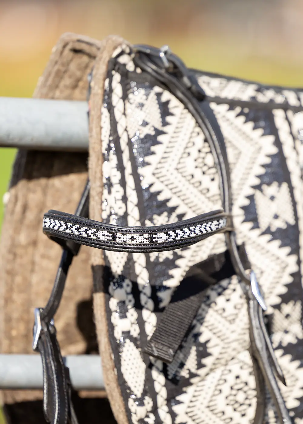 Ekskluzywny naczółek z kolekcji EDIX Brightstar, wykonany z najwyższej jakości skóry argentyńskiej i zdobiony lśniącymi koralikami. Zaprojektowany jako opcjonalny dodatek do ogłowi EDIX, pozwala na personalizację sprzętu i nadanie mu wyjątkowego, luksusowego charakteru, zachowując przy tym najwyższy standard komfortu dla konia.