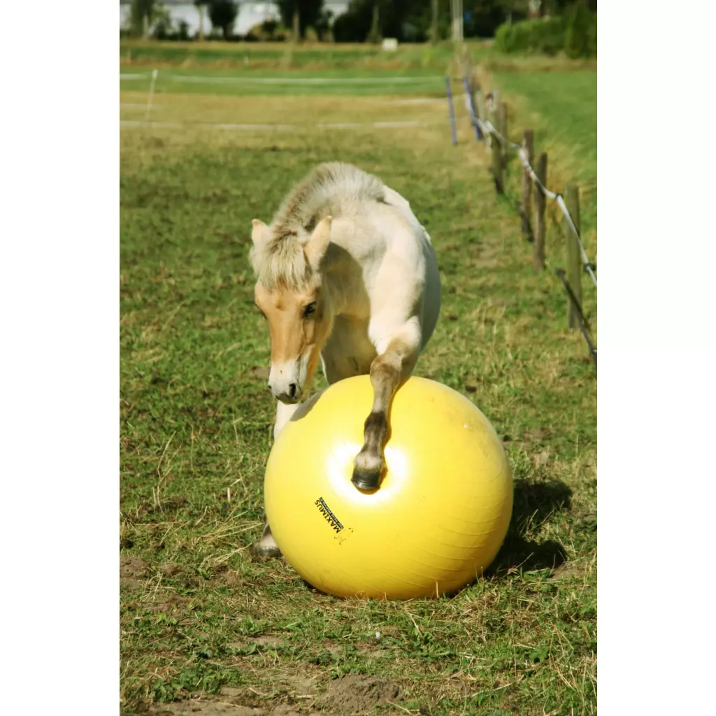 Konie będą miały trudności z gryzieniem piłki ze względu na jej rozmiar i gładki materiał.