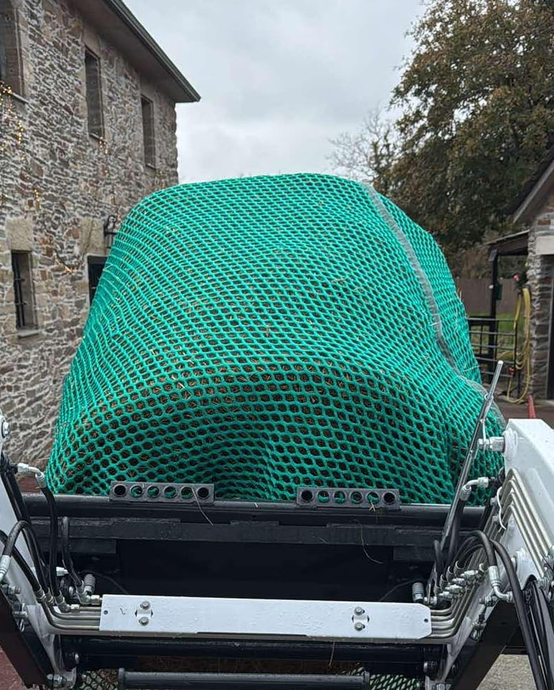 - Siatka jest odporna na warunki atmosferyczne, jednak suszenie po deszczach znacznie przedłuży jej trwałość. Regularne opróżnianie z zalegającego kurzu i wilgotnych resztek siana jest niezbędne dla utrzymania higieny i wydłużenia żywotności siatki.