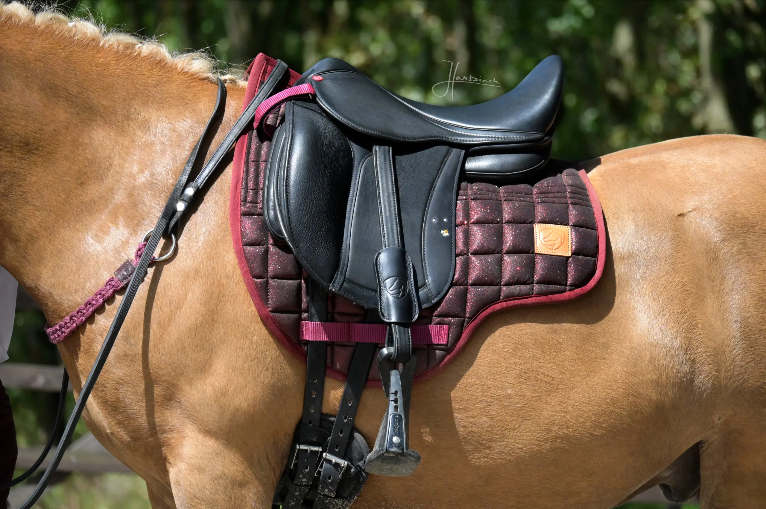 Anatomiczne klocki kolanowe: Duże, stabilne klocki montowane na rzepy pod tybinką pozwalają na precyzyjne ustawienie podparcia nogi, wymuszając poprawną, pionową postawę ujeżdżeniową.
