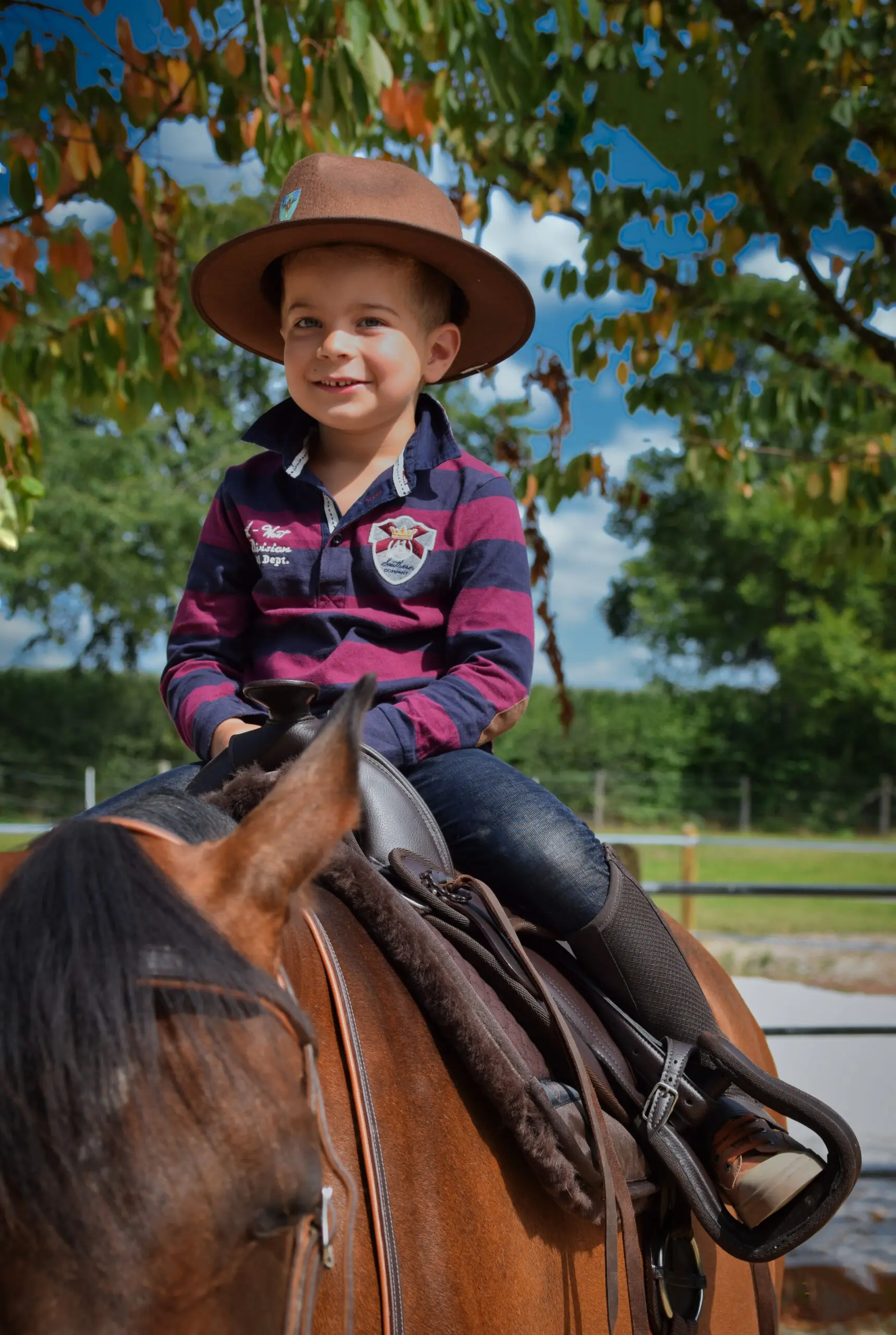 Regulowane strzemiona westernowe: Szerokie, bezpieczne strzemiona z możliwością regulacji długości, dopasowane do krótkich nóg dziecka.