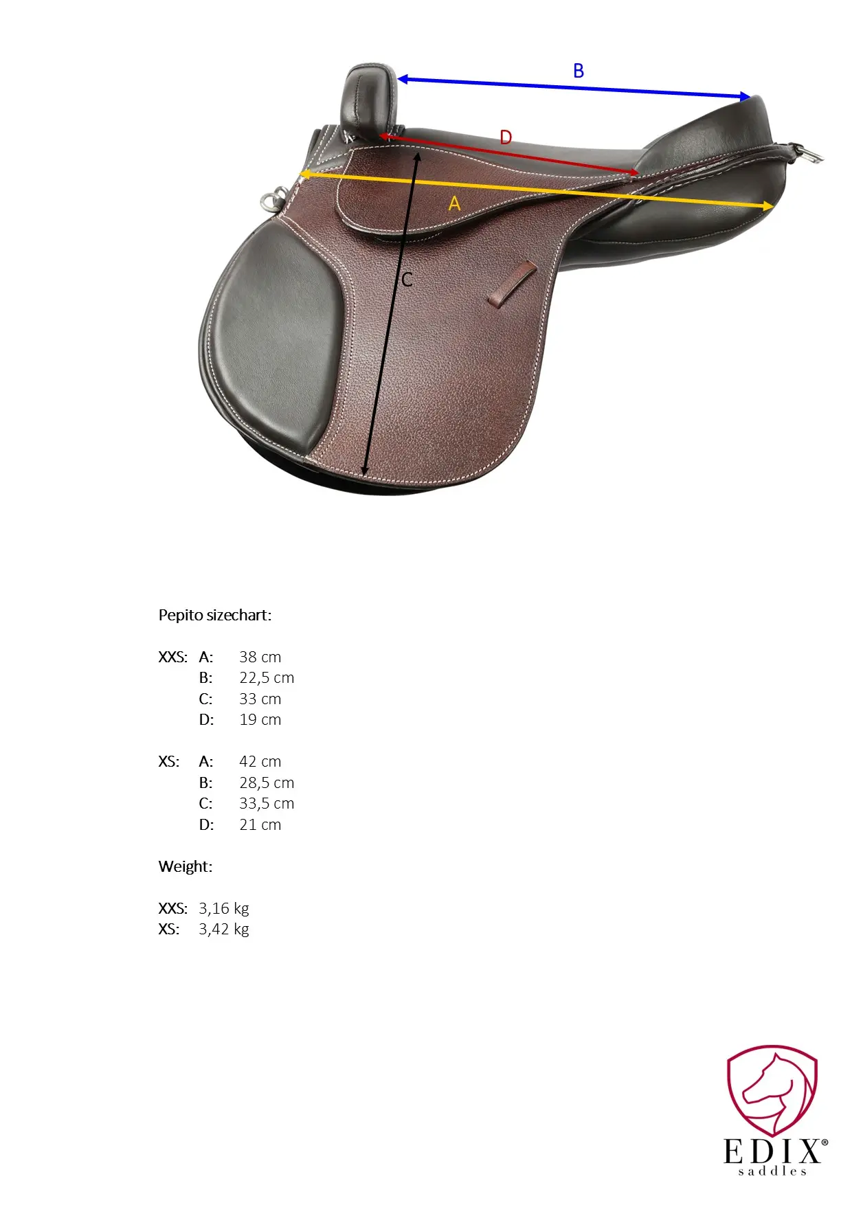 To najbardziej ekonomiczne i praktyczne siodło z całej gamy dziecięcej EDIX. Jeśli Twoje dziecko dopiero zaczyna przygodę z końmi i nie chce ograniczać się do jednej dyscypliny, Pepito zapewni mu komfort i wsparcie w każdej sytuacji. Jest lekkie, bezpieczne i "wybacza" błędy początkującego dosiadu.
