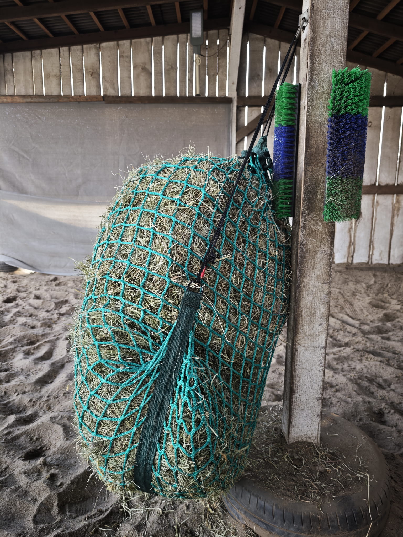 Siatka na siano SIMPLE PREMIUM z oczkiem 6 cm to rozwiązanie stworzone dla właścicieli koni, którzy szukają złotego środka w systemie slow feeding. Oczko o boku 6 cm pozwala na sprawniejsze pobieranie siana niż w modelach restrykcyjnych, jednocześnie skutecznie zapobiegając rozrzucaniu i marnowaniu paszy na ściółkę.